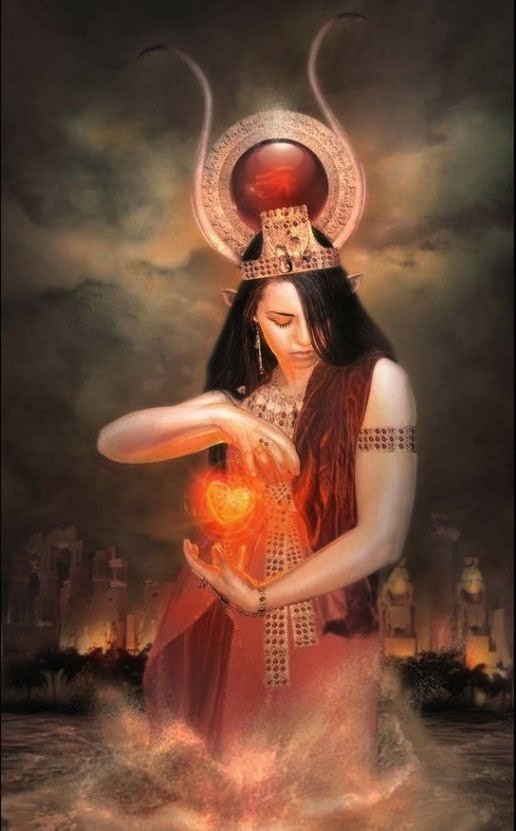 O Império Médio foi fundado quando o faraó do Alto Egito, Mentuhotep II, reconquistou o controle do Baixo Egito, que havia se tornado independente durante o Primeiro Período Intermediário. Esta reunificação havia sido conseguida através de uma guerra brutal, que duraria vinte e oito anos com muitas vítimas; ao fim dos combates, no entanto, a paz retornou e o reinado do faraó seguinte, Mentuhotep III, foi pacífico, com o Egito retornando novamente à prosperidade. Uma narrativa mitológica (“O Livro da Vaca Celestial”), feita a partir da perspectiva do Baixo Egito, foi desenvolvida neste período, abordando a experiência desta longa guerra. Na narrativa, após a guerra, Rá, que representava o faraó do Alto Egito, não mais era respeitado pelo povo do Baixo Egito, que deixou de obedecer sua autoridade. O mito afirma então que Rá se comunicou através do terceiro olho (Maat) de Hator, contando a ela que algumas pessoas daquele país planejavam assassiná-lo. Hator ficou então tão furiosa com o fato de que as pessoas que ela havia criado poderiam ser tão audaciosas a ponto de planejar isso que se transformou em Sekhmet (deusa da guerra do Alto Egito) para destruí-los. Hator, como Sekhmet, se tornou sanguinária e o banho de sangue foi imenso, pois nada podia pará-la. À medida que as mortes continuavam, Rá se deu conta da situação caótica na região e decidiu interromper Sekhmet, sedenta de sangue, derramando grande quantidade de vinho com cor de sangue sobre o solo para enganá-la. Sekhmet então bebeu grande quantidade deste vinho, imaginando ser sangue, e acabou por se embebedar, voltando à sua forma pacífica, como Hator.