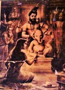 Várias historias contam como ganhou a cabeça de elefante. Numa das mais populares, Parvati queria um filho para protege-lo incomodas, de modo que criou Ganesha com pedaços de sua pele e o pôs na porta de seus aposentos, Quando Ganesha impediu que o marido Parvati, Shiva, entrasse, Shiva cortou a cabeça de Ganesha. Parvati ficou arrasada, por isso Shiva colocou nele a cabeça do primeiro animal que viu, um elefante.