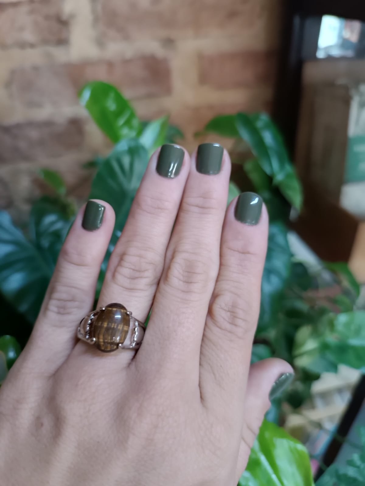 Este anel em latão, com cristal natural de ametista lapidado, é um dos nossos “baratinhos poderosos”. Embora seja bijuteria, ele traz consigo a sofisticação de uma joia, além dos benefícios incríveis do Olho de Tigre.
